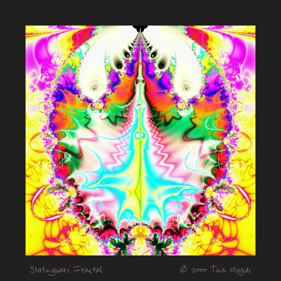 Over the years Frederik has further developed the complexity of the software, with the help of a core number of well-known formula writers. It is probably the most widely used fractal-generating software today, and the one I still use now. It is available to try for free here: Ultra Fractal